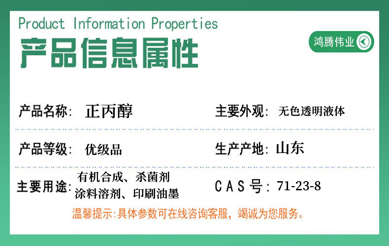 正丙醇 99%涂料有机溶剂印刷油墨稀释剂CAS71-23-8